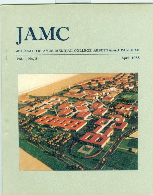 Journal of Ayub Medical College, Abbottabad is an OPEN ACCESS JOURNAL which means that all content is FREELY available without charge to all users whether registered with the journal or not. The work published by J Ayub Med Coll Abbottabad is licensed and distributed under the creative commons License CC BY ND Attribution-NoDerivs. Material printed in this journal is OPEN to access, and are FREE for use in academic and research work with proper citation. J Ayub Med Coll Abbottabad accepts only original material for publication with the understanding that except for abstracts, no part of the data has been published or will be submitted for publication elsewhere before appearing in J Ayub Med Coll Abbottabad. The Editorial Board of J Ayub Med Coll Abbottabad makes every effort to ensure the accuracy and authenticity of material printed in J Ayub Med Coll Abbottabad. However, conclusions and statements expressed are views of the authors and do not reflect the opinion/policy of J Ayub Med Coll Abbottabad or the Editorial Board.