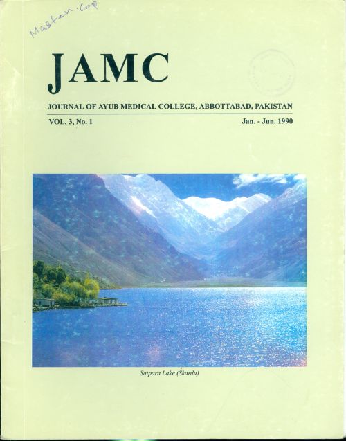 Journal of Ayub Medical College, Abbottabad is an OPEN ACCESS JOURNAL which means that all content is FREELY available without charge to all users whether registered with the journal or not. The work published by J Ayub Med Coll Abbottabad is licensed and distributed under the creative commons License CC BY ND Attribution-NoDerivs. Material printed in this journal is OPEN to access, and are FREE for use in academic and research work with proper citation. J Ayub Med Coll Abbottabad accepts only original material for publication with the understanding that except for abstracts, no part of the data has been published or will be submitted for publication elsewhere before appearing in J Ayub Med Coll Abbottabad. The Editorial Board of J Ayub Med Coll Abbottabad makes every effort to ensure the accuracy and authenticity of material printed in J Ayub Med Coll Abbottabad. However, conclusions and statements expressed are views of the authors and do not reflect the opinion/policy of J Ayub Med Coll Abbottabad or the Editorial Board.