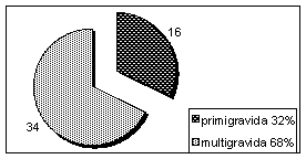 patients, 16 were primigravida and 34 were multigravida, with the mean age of
