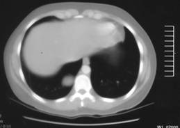 later. The patient remained asymptomatic and the CT scan was unchanged. A fibreoptic bronchoscopy with exploratory right video assisted thoracic